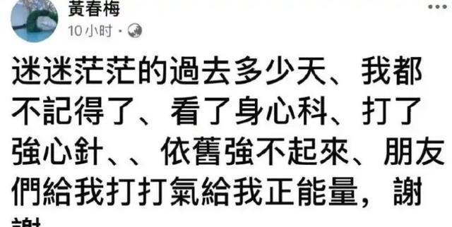 自从大S走后,她总在社交账号上悼念女儿,身边的亲友也说,她一直陷在悲痛里,整天以泪洗面。 可能是因为太过于悲伤,她的健康受到了严重影响,一度到了连走路都没办法的地步。 后来她在小S的陪伴下看中医调理,身体才慢慢好转。但到现在还是睡不着觉,没办法一觉到天亮。